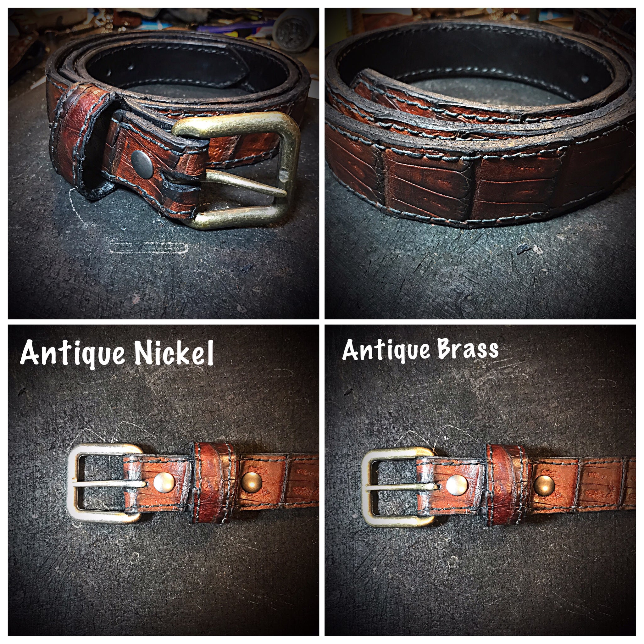 Get your choice of antique brass or nickel buckles. The buckle is detachable, you are able to easily switch out the buckle.
